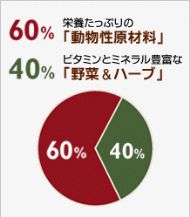 栄養たっぷりの動物性たんぱく質と、ビタミンとミネラルが豊富な野菜・ハーブを配合。厳選した素材をブレンドしています。
